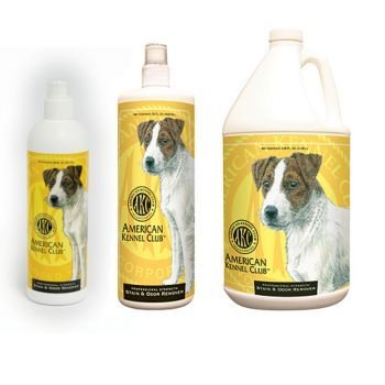 AKC® Stain and Odor Remover American Kennel Club® Stain and Odor Remover is guaranteed to completely eliminate the worst odors, even from deep down in carpets and upholstery! Billions of enzymes work instantly to dissolve tough stains on contact. Your dogs won’t even be able to find their own accidents! A great aid for housebreaking new puppies or cleaning up after older, incontinent dogs. Features: · Specially formulated to completely eliminate stains and odors · Works on tough stains including urine, vomit, feces, skunk spray and more · For use on any water-safe surface Item Specifications: Size: 20 oz. 32 oz. 1 Gallonw