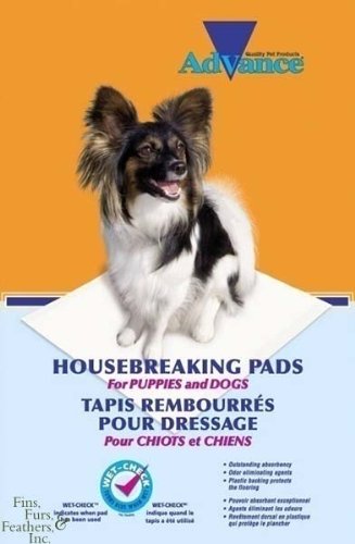 Advance Training Pads Super absorbent "Wet Check"-turns blue when wet Makes housebreaking easy Poly-Dry Formula locks-in moisture and prevents tracking Plastic, non-skid backing protects floorAdvance training pads have unique, super absorbent crystals that transform liquid to a solid gel in seconds! The activated crystals absorb over 100 times their weight making it safe to leave the pet alone for extended hours. Specially designed quilted pattern help to wick away the moisture. The scent attracts puppies, and the 5-step training system simplifies housebreaking. Advance pads are excellent for all indoor, diabetic, incontinent and senior dogs. The plastic backing protects floors and the pads are more sanitary by preventing tracking of urine.Use with the convenient Advance Housebreaking Pad Frame designed with skidproof corners to stop those training pads from sliding across the floor.